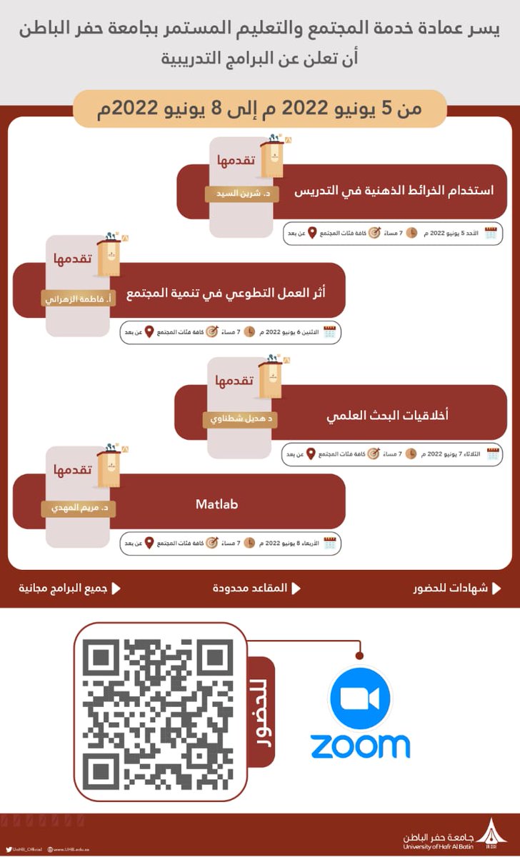 - يبدأ البث المباشر للدورات في المواعيد المحددة عبر برنامج زوم من خلال الرابط التالي: